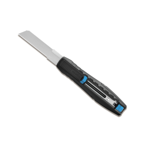"longDescription": "<h2>Sicherheitsmesser Martor SECUBASE® 383</h2><p>Mit dem Sicherheitsmesser SECUBASE 383 entscheiden Sie, wie geschnitten wird! Es vereint Sicherheitsmesser und Cuttermesser in Einem. Das Sicherheitsmesser ist mit einem automatischen Klingenrückzug ausgestattet, um Schnittverletzungen zu vermeiden. Da aber bestimmte Schneidanwendungen besser mit fixierter Klinge durchzuführen sind, kann diese einfach und sicher festgestellt werden. Dafür lässt sich die Klinge optional in sieben Stufen arretieren. Sicherheitsmesser SECUBASE 383 - Ergonomisch und einfach zu bedienen! Das Sicherheitsmesser ist sowohl für Links- als auch für Rechtshänder geeignet. Linkshänder können die Klinge ganz einfach einmal um 180° drehen und so das Schneidwerkzeug komfortabel verwenden. Der Klingenwechsel funktioniert einfach und sicher mit dem blauen Klingenwechselknopf am Ende des Griffs. Nach Betätigen des Knopfes können Sie das Innenteil inkl. Schieber herausziehen. Zwei Magnete halten die Klinge des Sicherheitsmessers in der richtigen Position. Für ein besseres Handling und angenehmeres Arbeiten ist das SECUBASE 383 außerdem mit einem ergonomischen Griff ausgestattet. Dank des besonders langen Klingenaustritts von max. 7,8 cm können mit dem Sicherheitsmesser problemlos sogar 4-lagige Kartons, Sackwaren oder Papierbahnen geschnitten werden. Bestellen Sie auch das passende Set an Ersatzklingen bequem bei uns im Shop. Zur sicheren Entsorgung Ihrer benutzten Klingen erhalten Sie bei uns auch eine praktische Sammelbox für gebrauchte Klingen. Das Sicherheitsmesser lässt sich sicher und bequem in unserer Martor Gürteltasche für Sicherheitsmesser und Zubehör aufbewahren.</p><br>",