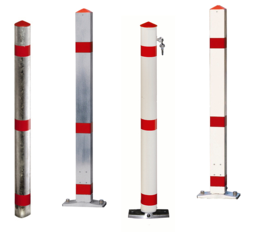 "description": "m. Spitzkopf rund, HxØ 900x76mm, Stahl, verzinkt, reflektierend, herausnehm-/abschließbar, Dreikantschloss, m. Bodenhülse",