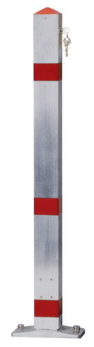 "longDescription": "<h2>Sperrpfosten</h2><strong>mit spitzem Kopf</strong><br><ul><li><strong>Signalwirkung</strong> - mit 3 reflektierenden Streifen in rot</li><li>Robuste Stahlrohrkonstruktion</li></ul><br><strong>Sie heben die Wahl:</strong><br><ul><li><strong>Dauerhafte Absperrung oder kurzfristiger Durchlass</strong> - zum festen Einbetonieren oder Aufdübeln, zum Herausnehmen oder Kippen</li></ul>",