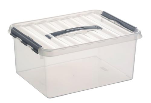Aus bruchsicherem Polypropylen in transparent. Wände geschlossen, Boden geschlossen. Stülpdeckel. Verschließbar mit Griffleistenverschluss. Einfacher Transport durch Griffleiste, Deckel mit Tragegriff. Mit Deckel stapelbar. Leer und ohne Deckel platzsparend ineinander stapelbar.