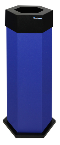 Innenbehälter mit korrosionsschützender Zinkbeschichtung. Einfache Entleerung über herausnehmbaren Innenbehälter. Über Gasdruckfedern wird das aufklappbare Kopfteil offen gehalten. So bleiben die Hände frei für eine schnelle Entnahme des Mülls. Verschließbar mit Vierkantschloss. Korpus aus Qualitätsstahlblech verzinkt mit schlag- und kratzfester Pulverbeschichtung in ultramarinblau-metallic. Kopfteil aus Stahl verzinkt mit schlag- und kratzfester Pulverbeschichtung in RAL9005 Tiefschwarz. Unterbau stirnseitig mit 2 Rollen zum einfachen verschieben für z. B. Reinigungsarbeiten.