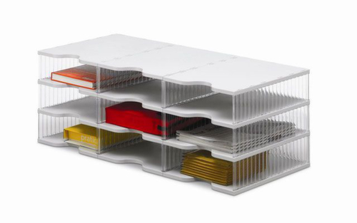 "metaDescription": "Styro Ablagesystem styropost Trio-Tower - 9 Fächer, m. rutschsicheren Füßen, Tischaufstellung, HxBxT 322x900x400mm, Polystyrol, lichtgrau/transparent",