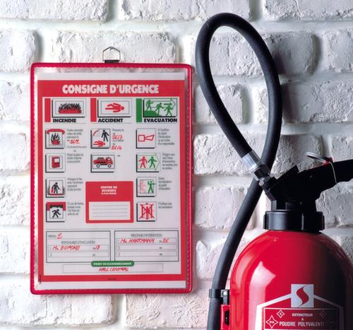 "longDescription": "<h2>Aushangtasche</h2><strong>Informationen gut geschützt präsentieren</strong><br><ul><li><strong>Robust und auffällig</strong> - Rahmen aus Stahldraht mit farbiger Kunststoffummantelung</li><li>Einfach aufhängen mit stabilem Metallaufhänger</li><li><strong>Bei jedem Wetter lesbar</strong> - Tafel aus reflexfreiem Kunststoff</li></ul>",