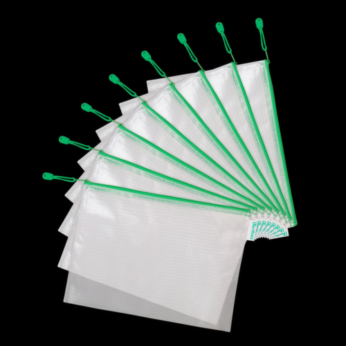 "description": "aus PVC in transparent, in verschiedenen Formaten und Reißverschlussfarben",