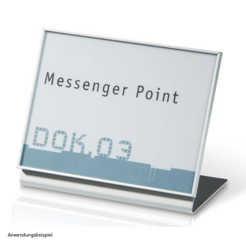 "longDescription": "<h2>Tischaufsteller</h2><ul><li><strong>Schutz vor Staub</strong> - Scheibe aus Acrylglas</li><li><strong>Zeitlos und robust</strong> - Rahmen aus hochfesten Aluminiumprofilen</li></ul><br><strong>Gut zu wissen!</strong><br><br>Um die Beschriftung der Schilder noch einfacher zu machen, bestellen Sie direkt die Gestaltungs-Software und die passenden Einlagen mit!<br>",