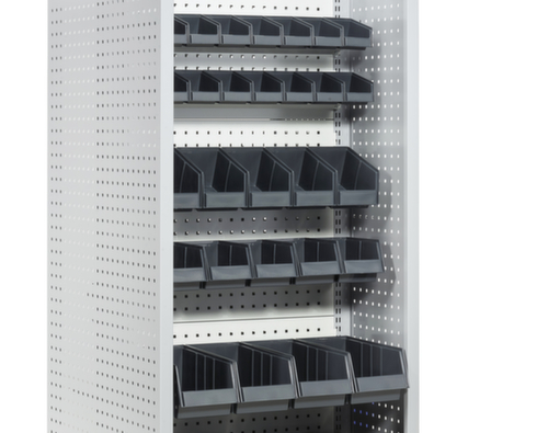 Aus bruchsicherem Polypropylen in schwarz. Temperaturbeständig von -20 °C bis +70 °C. Boden innen gewellt. Dadurch ist die Entnahme von Kleinteilen besonderes einfach. Mit Beschriftungsfeld vorne. Gleiche Breiten stapelbar. ESD - elektrisch leitfähige Ausführung.