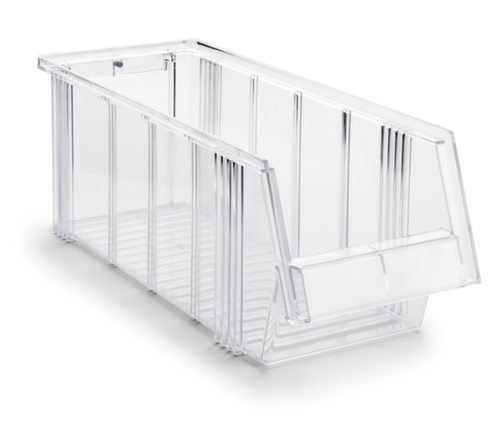 "longDescription": "<h2>Transparenter Sichtlagerkasten</h2><strong>mit großer Eingrifföffnung</strong><br><ul><li>Aus glasklarem Polystyrol</li><li>Mit großer Eingrifföffnung</li></ul><br>Die Sichtlagerkästen von Treston sind optimal für die Lagerung Ihrer Kleinteile geeignet. Durch die Transparenz des Materials können Sie immer sehen, was sich in den Kästen befindet, auch in gestapeltem Zustand. Mit der Eingrifföffnung kann man die Kleinteilekästen schnell und einfach hervorziehen oder anheben.<br><br>Polystyrol ist absolut stabil und hat ein sehr gutes Isoliervermögen. Es ist chemisch beständig gegen Lösungsmittel und wasserbasierte Flüssigkeiten. Dies macht den Sichtlagerkasten zu einem langlebigen, sicheren und praktischen Lagerort für Ihre Kleinteile<br><br><strong>Gut zu wissen!</strong><br><br>Querteiler aus pulverbeschichtetem Stahlblech in grau und selbstklebende Etiketten sind als Zubehör lieferbar.<br>",