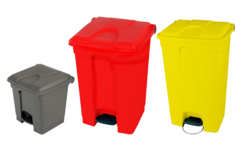 "title": "Tretabfallbehälter, 90 l, weiß, Deckel gelb",