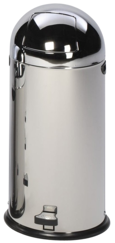 "longDescription": "<h2>Push- und Tretabfalleimer</h2><strong>einfache Entleerung durch seitliche Griffmulden</strong><br><ul><li><strong>Geruchssicher und hygienisch</strong> - selbstschließende Einwurfklappe aus poliertem Edelstahl</li><li><strong>Bodenschonend</strong> - mit Bodenring aus Kunststoff</li><li><strong>Leicht zu reinigen</strong> - herausnehmbarer Innenbehälter aus verzinktem Stahl mit Griffen</li></ul><br><strong>Sie haben die Wahl:</strong><br><ul><li><strong>Per Hand oder Fuß</strong> - Deckelöffnung manuell oder per Tretpedal</li><li><strong>Auffällig oder elegant</strong> - aus Stahlblech mit farbiger Pulverbeschichtung oder aus Edelstahl</li></ul><br>Durch seine Optik ist dieser Mülleimer im Retro-Look ein Blickfang und passt sowohl ins Büro als auch in repräsentative Bereiche wie Foyer, Empfangsbereiche oder Verkaufsräume. Der Abfalleimer hat eine Garantie von 3 Jahren. <br><br>Die Einwurfklappe aus Edelstahl ist durch ihr Material abwischbar und leicht hygienisch sauber zu halten. Seitliche Griffmulden ermöglichen ein bequemes Anheben zur einfachen Entleerung des Abfalleimers. Für den Fußbodenschutz sorgt ein breiter Bodenring aus Kunststoff.<br>",