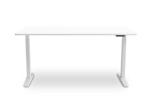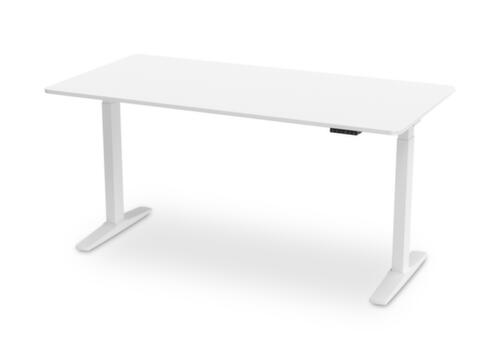 Die wichtigsten Maße des UDOBÄR Schreibtisches auf einen Blick:Platte aus Spanplatte mit pflegeleichter Melaminharzbeschichtung in Dekor weiß. Plattenform rechteckig. Kante mit stoßfestem ABS-Umleimer. T-Fußgestell aus Metall mit schlag- und kratzfester Pulverbeschichtung in weiß. Rohrform Rechteckrohr. Höhenverstellung durch 2 Elektromotoren. Die Steuerung erfolgt bequem und visualisiert durch Handschalter und Display. Dies sorgt für einen einfachen und schonenden Verstellvorgang. Funktionen: Abspeichern und automatisches Abrufen von programmierten Tischhöhen dank Memoryfunktion. Der automatische Kollisionsschutz stoppt sofort bei Widerstand von oben oder unten und sorgt somit für absolute Sicherheit. Gestell mit Bodenschoner. Mit Eurostecker.