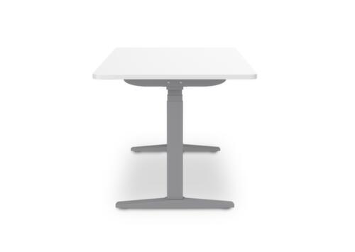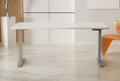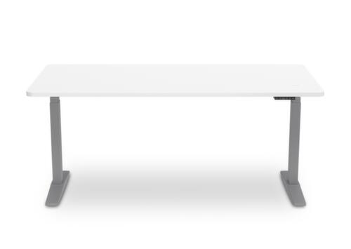 Die wichtigsten Maße des UDOBÄR Schreibtisches auf einen Blick:Platte aus Spanplatte mit pflegeleichter Melaminharzbeschichtung in Dekor weiß. Plattenform rechteckig. Kante mit stoßfestem ABS-Umleimer. T-Fußgestell aus Metall mit schlag- und kratzfester Pulverbeschichtung in grau. Rohrform Rechteckrohr. Höhenverstellung durch 2 Elektromotoren. Die Steuerung erfolgt bequem und visualisiert durch Handschalter und Display. Dies sorgt für einen einfachen und schonenden Verstellvorgang. Funktionen: Abspeichern und automatisches Abrufen von programmierten Tischhöhen dank Memoryfunktion. Der automatische Kollisionsschutz stoppt sofort bei Widerstand von oben oder unten und sorgt somit für absolute Sicherheit. Gestell mit Bodenschoner. Schreibtisch mit kabelloser Ladestation, die in die Tischplatte integriert ist. So können Sie beim Arbeiten stets Ihre mobilen Endgeräte wie Smartphones laden, ganz ohne Kabelsalat auf der Arbeitsfläche. Mit Eurostecker.