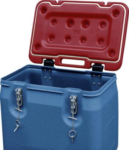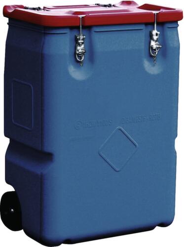 "metaDescription": "UN-zertifizierter Behälter mit Klappdeckel - für Putzlappen und Binder/Granulate, HDPE, blau, mit Bügelverschluss und Schiebegriff, 2 Hartplastikräder, in verschiedenen Größen",
