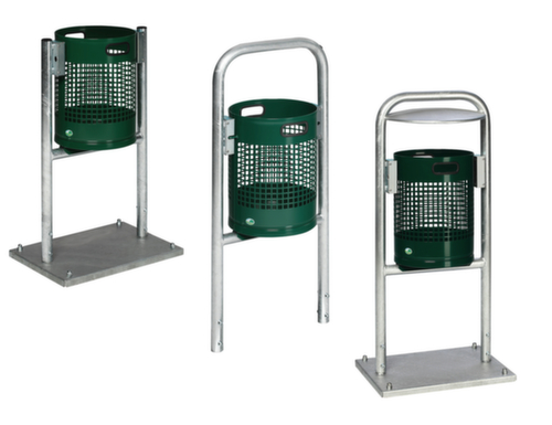 "description": "m. Rohrbogenständer, f. außen, 30l, HxBxT 1450x490x430mm, Boden, gelocht, Korpus Stahl moosgrün",