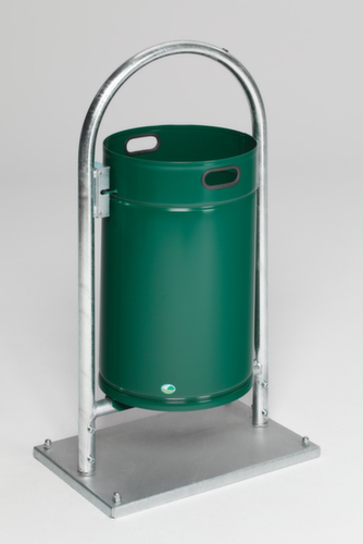 "longDescription": "<h2>Abfallbehälter mit Rohrbogenständer</h2><strong>formschön und robust für den Außenbereich</strong><br><ul><li><strong>Absolut wetterfest und langlebig</strong> - aus feuerverzinktem Stahlblech</li></ul><br><strong>Sie haben die Wahl:</strong><br><ul><li><strong>Schnelle oder extra standfeste Montage</strong> - zum Aufdübeln oder Einbetonieren</li><li><strong>Mit Regenschutz oder offen</strong> - mit oder ohne Schutzdach</li><li><strong>Mehr Farbe</strong> - zusätzlich mit Pulverbeschichtung</li></ul>",