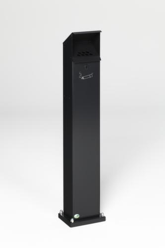 "longDescription": "<h2>Standascher</h2><strong>erlaubt keine Ablage von Müll dank Schrägdach</strong><br><ul><li><strong>Einfache Entleerung</strong> durch abklappbare Fronttür und herausnehmbare Innenbehälter</li><li><strong>Einfache Montage</strong> - Bodenplatte mit vorgebohrten Löchern zum Aufdübeln</li><li><strong>Sofort einsatzbereit</strong> - inklusive Befestigungsmaterial</li></ul><br><strong>Sie haben die Wahl:</strong><br><ul><li><strong>Auffällig oder elegant</strong> - aus Stahlblech mit farbiger Pulverbeschichtung oder aus Edelstahl</li></ul><br>Dieser Aschenbecher in Form einer Vierkantsäule besitzt ein abgeschrägtes Wetterschutzdach, das die Nutzung als Ablagefläche verhindert. Durch das Edelstahl oder verzinkte und pulverbeschichtetet Stahl ist eine hohe Korrosionsbeständigkeit gegeben und die Konstruktion hat eine Garantie von 3 Jahren.<br><br>Die nach vorne klappbare, verschließbare Fronttür erleichtert das Entleeren des 2 Liter-Inneneinsatzes. Eine Bodenplatte und dazugehörige Montagematerial zum Aufdübeln um den Ascher stand- und diebstahlsicher zu machen, wird mitgeliefert. Wahlweise mit oder ohne zusätzlichem Abfallbehälter.<br>",