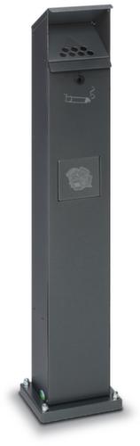 "longDescription": "<h2>Standascher</h2><strong>erlaubt keine Ablage von Müll dank Schrägdach</strong><br><ul><li><strong>Einfache Entleerung</strong> durch abklappbare Fronttür und herausnehmbare Innenbehälter</li><li><strong>Einfache Montage</strong> - Bodenplatte mit vorgebohrten Löchern zum Aufdübeln</li><li><strong>Sofort einsatzbereit</strong> - inklusive Befestigungsmaterial</li></ul><br><strong>Sie haben die Wahl:</strong><br><ul><li><strong>Auffällig oder elegant</strong> - aus Stahlblech mit farbiger Pulverbeschichtung oder aus Edelstahl</li></ul><br>Dieser Aschenbecher in Form einer Vierkantsäule besitzt ein abgeschrägtes Wetterschutzdach, das die Nutzung als Ablagefläche verhindert. Durch das Edelstahl oder verzinkte und pulverbeschichtetet Stahl ist eine hohe Korrosionsbeständigkeit gegeben und die Konstruktion hat eine Garantie von 3 Jahren.<br><br>Die nach vorne klappbare, verschließbare Fronttür erleichtert das Entleeren des 2 Liter-Inneneinsatzes. Eine Bodenplatte und dazugehörige Montagematerial zum Aufdübeln um den Ascher stand- und diebstahlsicher zu machen, wird mitgeliefert. Wahlweise mit oder ohne zusätzlichem Abfallbehälter.<br>",