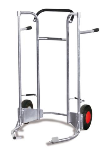Die wichtigsten Maße der VARIOfit Transportkarre auf einen Blick:Eine leichtere Kippfunktion wird durch den günstigen Schwerpunkt in unmittelbarer Nähe der Achse gegeben. Ladungssicherung durch Hebelsystem mit Offenhalte- / Klemmfunktion. Konstruktion aus Stahl. Gestell mit korrosionsschützender Zinkbeschichtung. Räder mit pannensicherer, bodenschonender Vollgummi-Bereifung auf Kunststoff-Felge. Rad Ø 260 mm. Naben mit für den Dauerbetrieb geeignetem Kugellager.