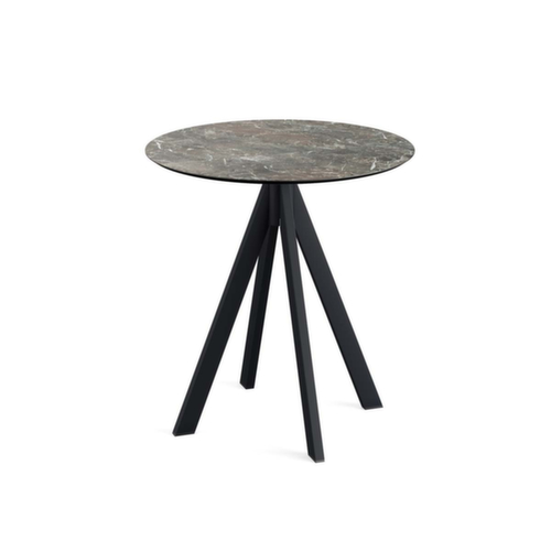 4-Fußgestell aus Stahl in schwarz. Platte aus HPL in Galaxy Marble.