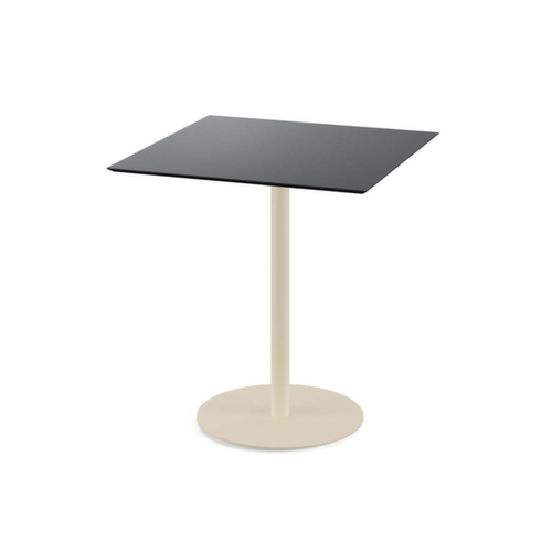 Die wichtigsten Maße des VEBA Gastrotisches Essentials Urban auf einen Blick:Tellerfußgestell aus Stahl in sandfarben. Platte aus HPL in schwarz.