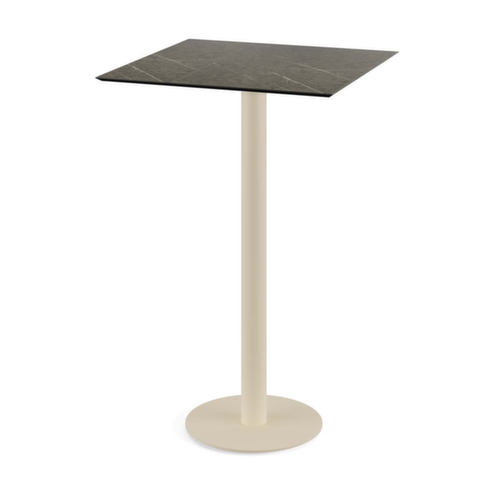 Die wichtigsten Maße des VEBA Gastrotisches Essentials Urban auf einen Blick:Tellerfußgestell aus Stahl in sandfarben. Platte aus HPL in Midnight Marble.