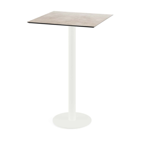 Die wichtigsten Maße des VEBA Gastrotisches Essentials Urban auf einen Blick:Tellerfußgestell aus Stahl in weiß. Platte aus HPL in Moonstone.