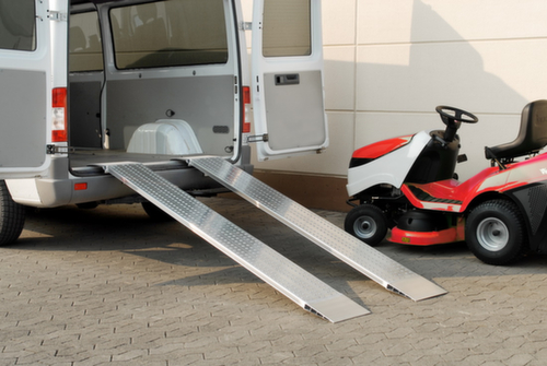 "longDescription": "<h2>Universal-Verladeschiene</h2><strong>auch für kleine Raddurchmesser geeignet<br>nebeneinander einsetzbar bis zur gewünschten Breite</strong><br><ul><li><strong>Kein Abrutschen</strong> - mit Sicherung</li><li><strong>Sicheres Arbeiten</strong> - mit rutschsicherer Lauffläche</li><li><strong>Robust und langlebig</strong> - aus Aluminium</li></ul>",