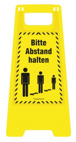 "metaDescription": "Warnaufsteller ActiveWorkplace®, Bodenaufsteller - \"Bitte Abstand halten!\", Bodenaufsteller, klappbar, Kunststoff, gelb",