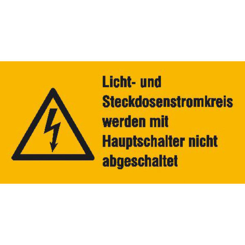 $B Warnkombischild $S $M auf Bogen "Licht- und Steckdosenstromkreis werden mit Hauptschalter nicht abgeschaltet"