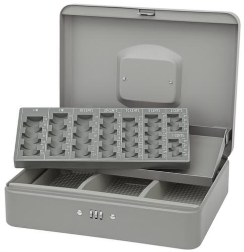 "title": "WEDO Geldzählkassette STANDARD, 3 Scheinfächer, 8 Münzfächer, Zahlenkombinationsschloss",