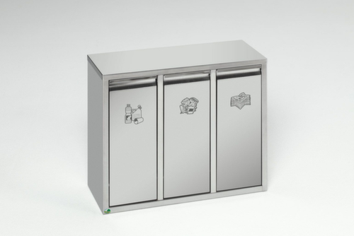 "longDescription": "<h2>Wertstoffsammelstation</h2><ul><li>Aus Edelstahl</li></ul>. Mit 3 Inneneinsätzen aus Kunststoff, einzeln entnehmbar durch nach vorne öffnende Klapptüren<br><ul><li>Piktogrammaufkleber und Montagematerial zur Wandbefestigung inklusive</li></ul>",