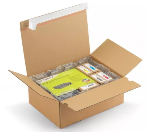 Die wichtigsten Details auf einen Blick:Für leichte bis mittelschwere Packstücke bis 10 kg. Widerstandsfähig gegen Feuchtigkeit und Temperaturschwankungen. Schnell aufgerichtet, denn durch leichten Druck auf die Seiten rastet der Automatikboden des Kartons ein. Verschließbar mit Haftklebeverschluss. Karton wiederverwendbar.