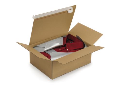 Die wichtigsten Details auf einen Blick:Für leichte bis mittelschwere Packstücke bis 10 kg. Widerstandsfähig gegen Feuchtigkeit und Temperaturschwankungen. Schnell aufgerichtet, denn durch leichten Druck auf die Seiten rastet der Automatikboden des Kartons ein. Verschließbar mit Haftklebeverschluss. Karton wiederverwendbar.