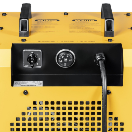 Mit Überhitzungsschutz und Nachlaufkühlung und Axialventilator für einen geräuscharmen Betrieb. Einsatz als reiner Lüfter möglich. Einfach zu tragen durch 2 Tragegriffe. Unterbau mit Rollen. In schwarz/gelb.