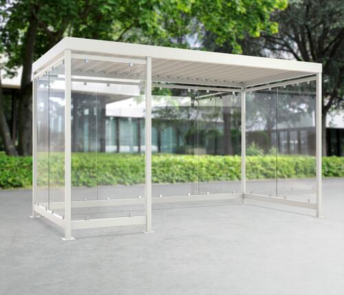"description": "HxBxT 2510x4195x2165mm, Wände ESG, Dach Trapezblech, Gestell RAL9016, Eingang breit",